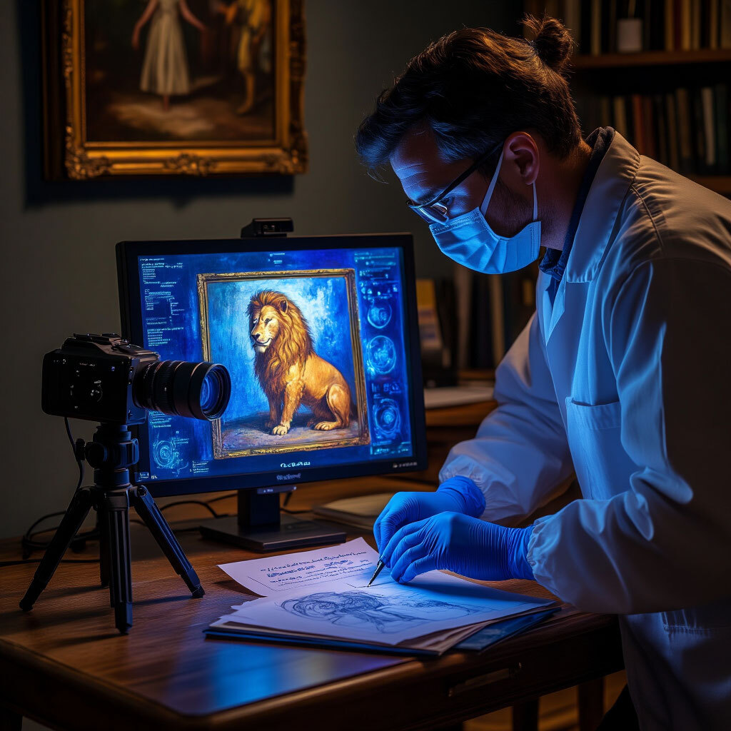 - Рентгенофлуоресцентный анализ (XRF) пигментов для обнаружения «анахроничных» материалов, несовместимых с заявленной эпохой или практикой художника.